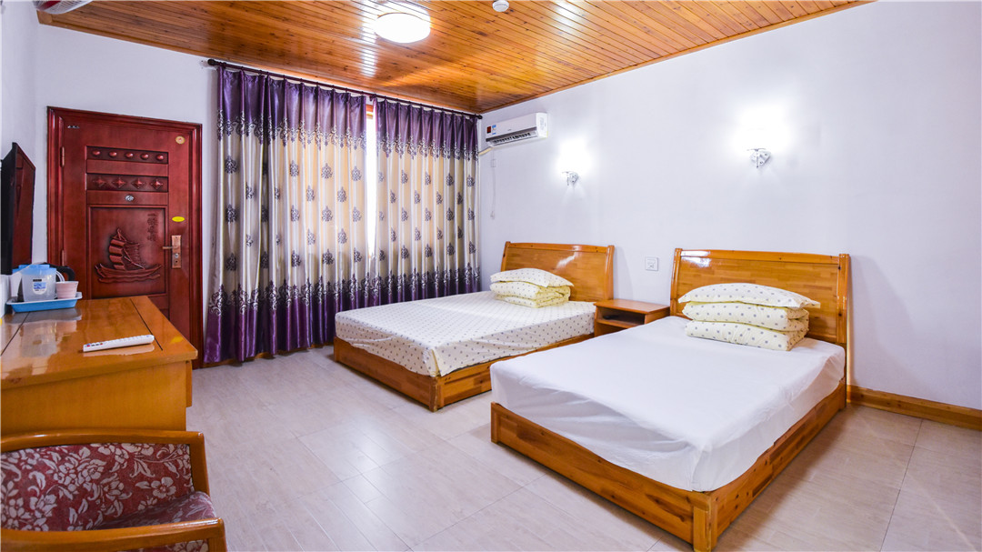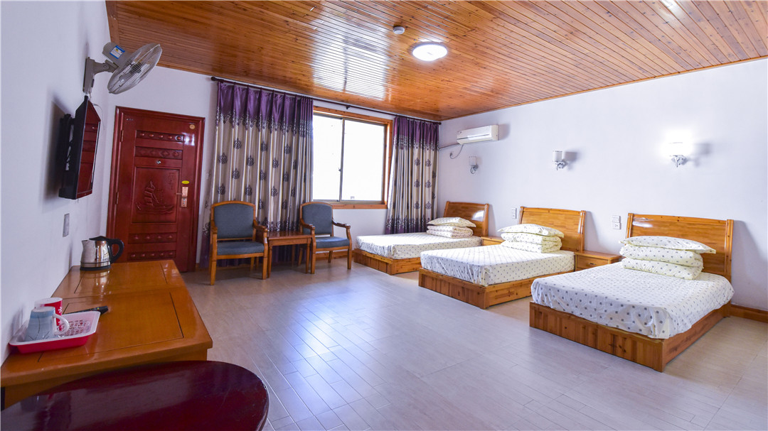 客房:能同时入住44人,房型有标间、三人间、家庭房,房间均配有中央热水器,24小时供应热水,床单被套一客一换。